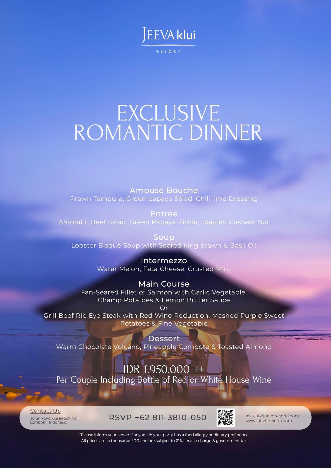 Savor the taste of paradise at Jeeva Klui with our exclusive F&B promotions. Enjoy delicious island-inspired dishes and refreshing drinks crafted from the finest local ingredients — all served with ocean views and warm Lombok hospitality.